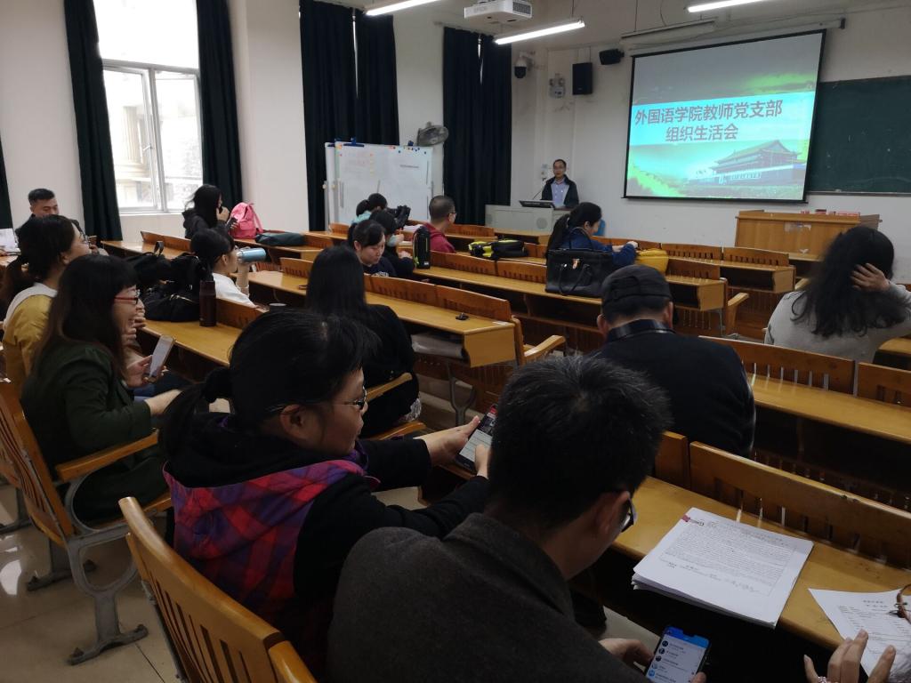 327日下午,中共梧州学院外国语学院教工党支部在明理楼M201召开2018年度支部党员组织生活会暨民主评议党员会议。会议由教师党支部书记梁毅主持。本次组织生活会活动主要是在党员之中开展批评和自我批评以及进行对党支部班子和党员进行2018年度的民主评议。