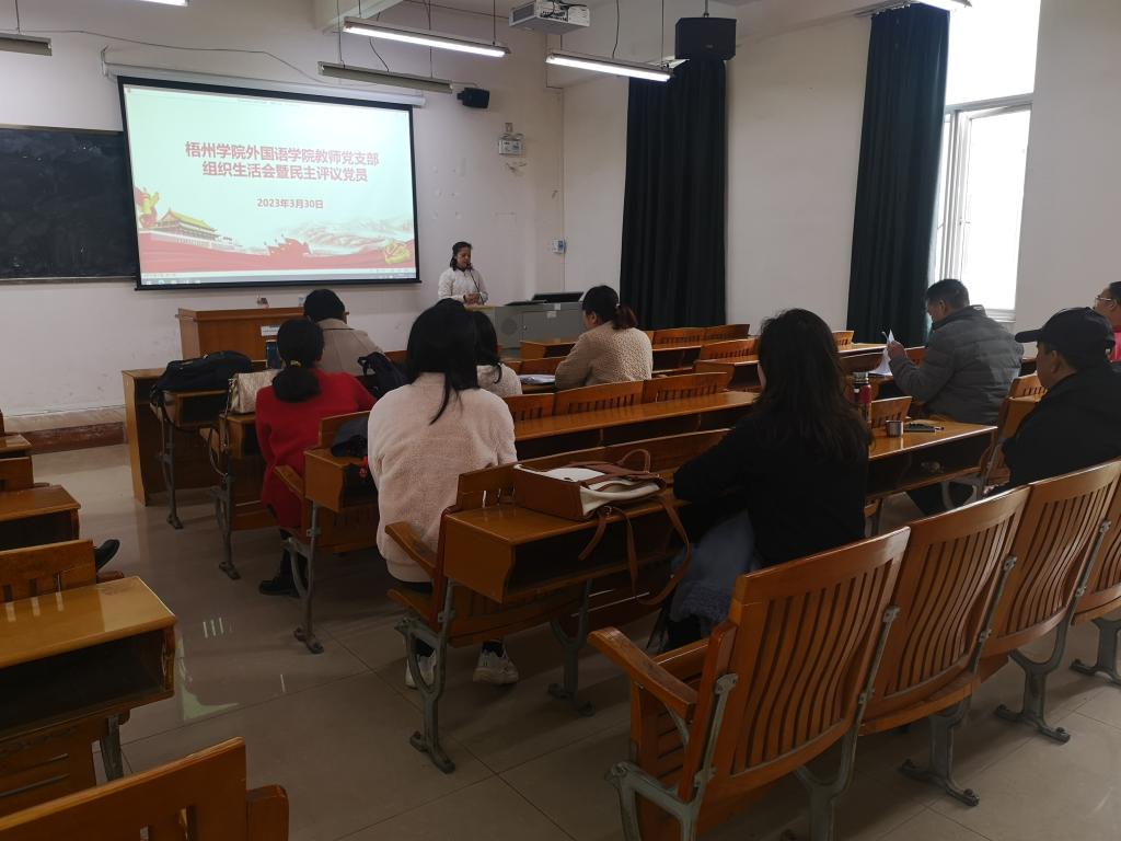 3月30日下午,外国语学院教师党支部在明理楼M506召开2022年度组织生活会,并开展民主评议党员。