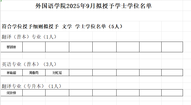 公示期为2025年9月23日至9月28日共五天。如有异议,可在公示期内以书面形式署真实姓名向外国语学院办公室反映。