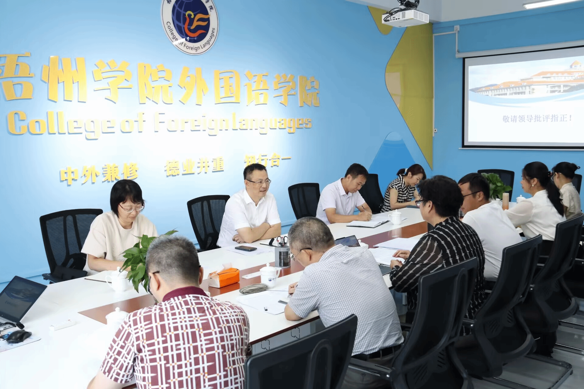 2025年7月9日,学校党委书记童晓晖一行深入外国语学院,开展本科教育教学审核评估诊断性评估整改工作专项督查。学院领导班子及相关人员参会。