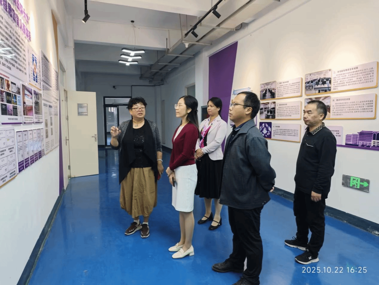莫晨宇副校长一行首先来到外国语学院文化长廊,认真参观了学院办学定位及人才培养特色、发展历程及师资队伍、办学成效与优秀校友、地域文化等9个展区。副校长莫晨宇认为文化长廊生动展现了学院的办学特色与育人成效,成为展示教学成果、彰显育人理念的窗口。