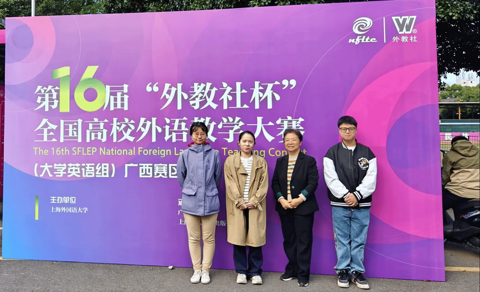 近日,第十六届“外教社杯”全国高校外语教学大赛(大学英语组)广西赛区决赛在广西师范大学(育才校区)圆满落下帷幕。我院李伟权老师及其团队成员邹燕、梁进老师获得视听说课组二等奖,甘宁老师及团队成员黄曦灵、骆韵怡老师获得综合课组二等奖,充分展现了我院教师在教学理念、课堂呈现与专业素养等方面的实力与风采。