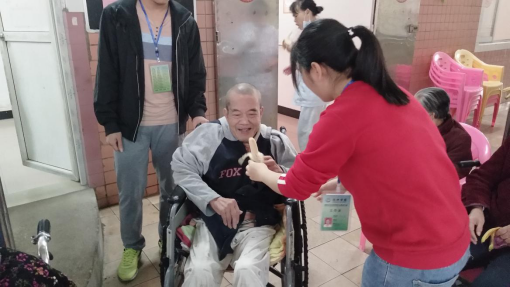 活动过程中,同学们给老人们分发水果,陪老人们聊天、玩游戏,给他们按摩、唱歌、跳舞、表演太极,整个活动氛围其乐融融。一首首经典的歌曲在同学们的伴唱下合着欢声笑语传遍了整个颐养院。有的爷爷奶奶还很健谈,拉着同学们滔滔不绝的讲话。活动最后,老人们和同学们合影留念,并合唱会歌《和你一样》,跟老人道别时,老人们十分感谢同学们的到来并表达下次再见的愿望。