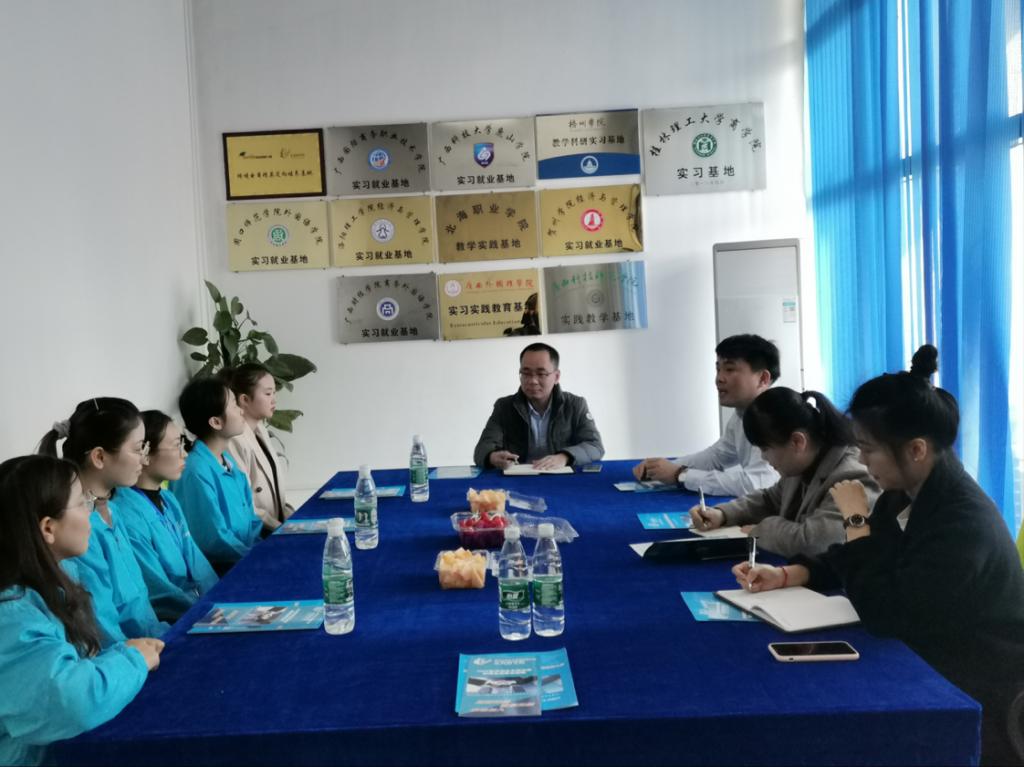 在考察调研期间,考察组在深圳乐客商学院与负责人洽谈在校生的跨境电商实训课程设置、人才培养方案等情况,并与在乐客实习培训的2017级毕业生进行座谈,了解她们在深圳的学习生活情况,梁毅副院长还对同学们有关毕业论文的提问进行了解答。座谈过后,考察组还先后走访看望了在深圳市昂牛科技有限公司和深圳云基智能科技有限公司工作的往届毕业生,并与公司负责人关于毕业生的就业现状、人才需求、行业前景等问题进行洽谈。