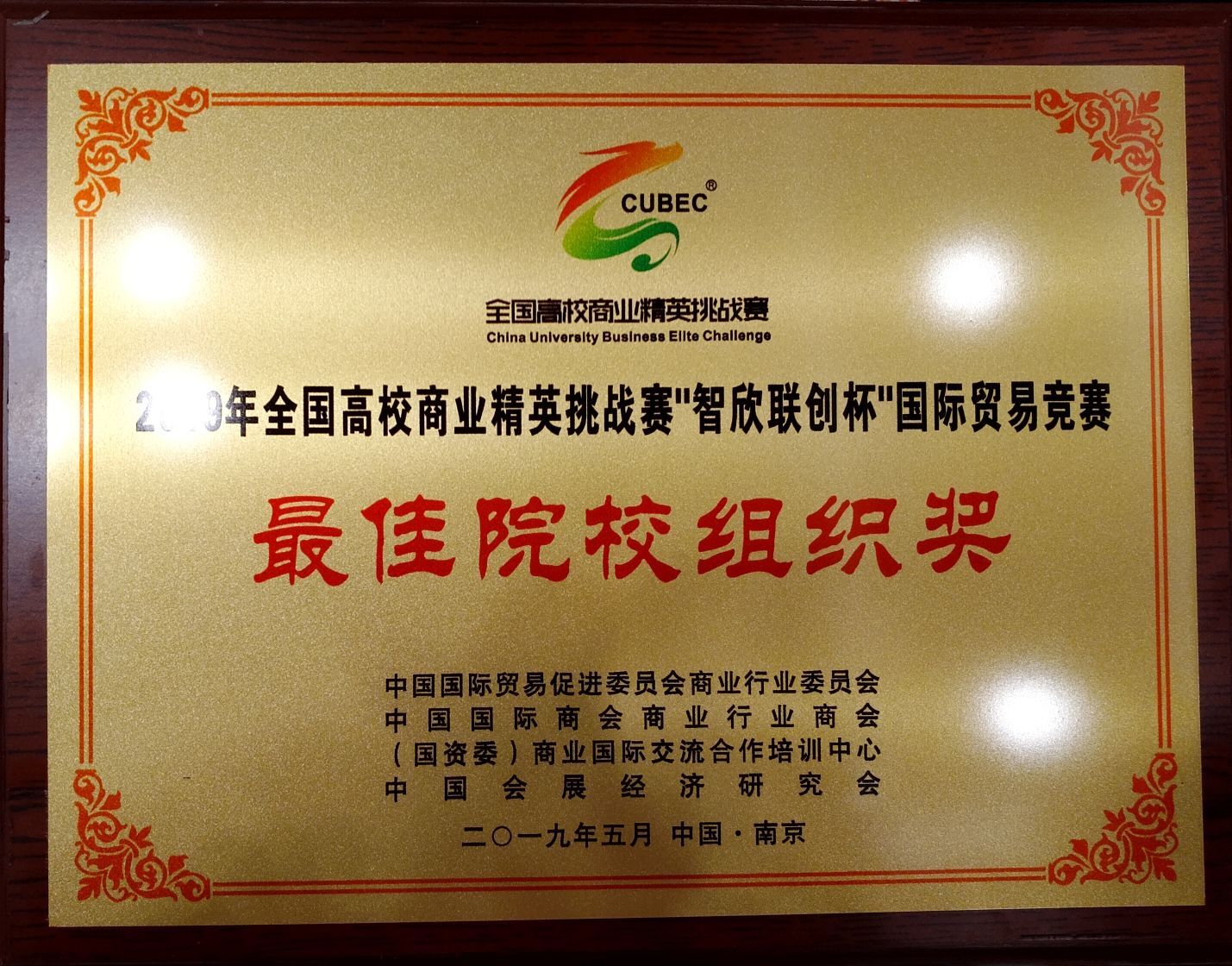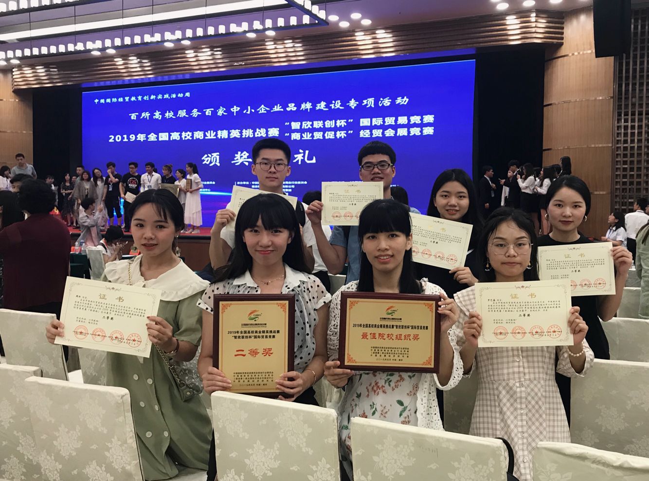 5月30日至6月3日,2019年全国高校商业精英挑战赛“智欣联创杯”国际贸易竞赛在南京国际展览中心举行。由外国语学院陆璐、李俐两位老师指导的商务英语专业参赛团队在本次比赛中团体二等奖以及6个个人奖项,同时我校也荣获“最佳院校组织奖”的荣誉称号。
