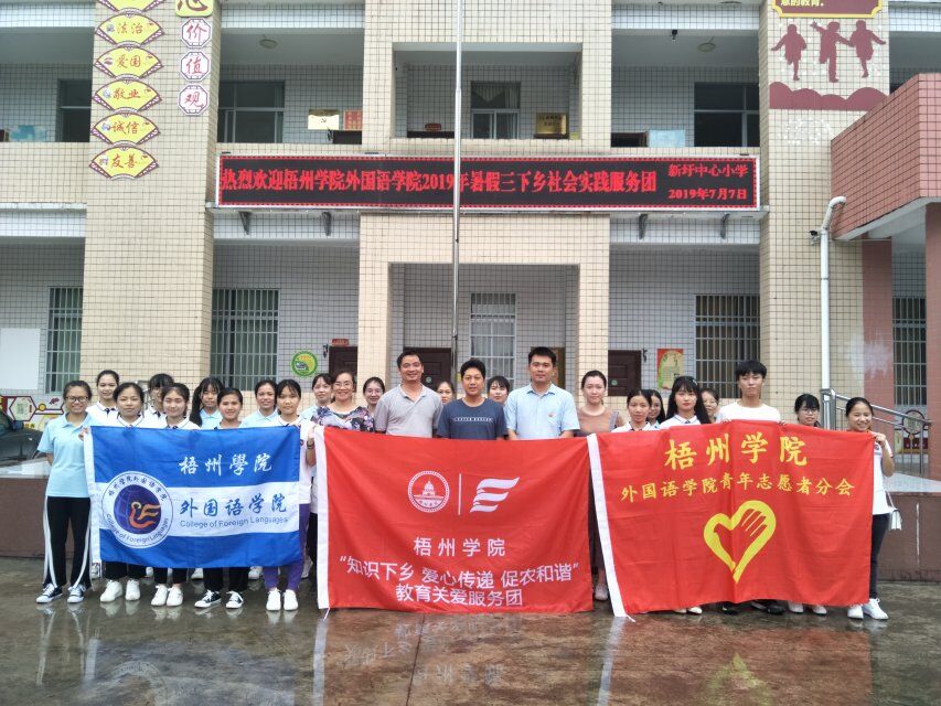 外国语学院2019年暑期三下乡实践活动成立“知识下乡,爱心传递,促农和谐”教育关爱服务团赴蒙山县新圩镇开展相关教育调研活动。