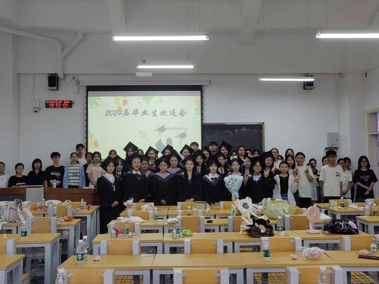 欢送会上,同学们一起观看了学院为毕业生录制的祝福视频,分享了大学生活的美好回忆和感悟、职场体验和择业就业的经验。同学们还与在场的学弟学妹们进行交流,对学弟学妹提出的考研、择业、学习和工作中的困惑一一解答。