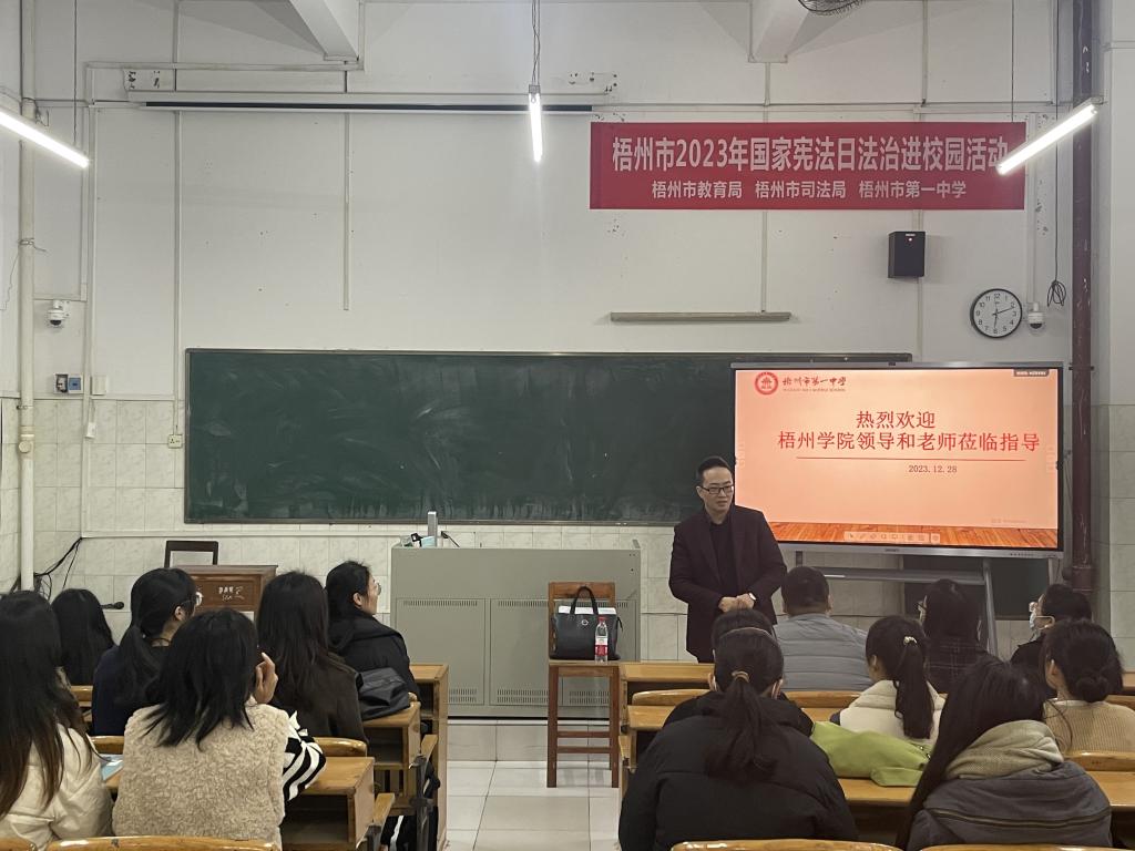 为加强教育实习过程管理,深入了解毕业生实习情况,2023年12月28日上午,梧州学院外国语学院英语专业教研室主任蒋樟健、专业教师姜芷愔到梧州市第一中学实习基地开展实习检查工作,在第一中学党委副书记方燕、黄柱鹏老师的陪同下开展了座谈调研、听课和评课,正在第一中学实习的30名2020级毕业生汇报实习成果。