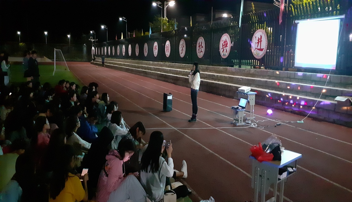 10月31日晚上七点,外国语学院在黄埔办学点足球场举办2019级新生“写给四年后的自己一封信”活动,学院党总支副书记庄雨及2019级195名全体新生参加活动,活动由蔡思雨主持。