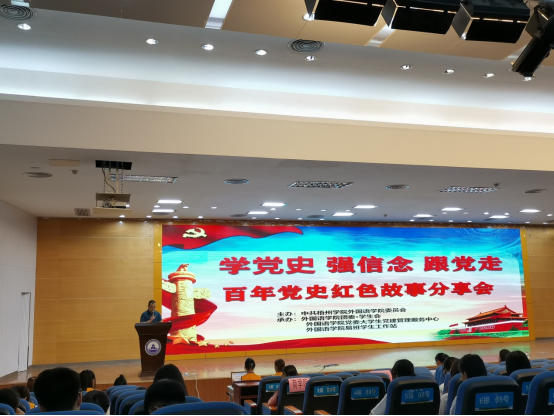 为深入开展党史学习教育,进一步引导师生坚定信念跟党走,5月9日晚,外国语学院党委在明理楼学术报告厅组织开展了百年党史红色故事分享会。外国语学院党委书记朱宇乾老师、师生党员代表和团员青年代表共300余人参加。