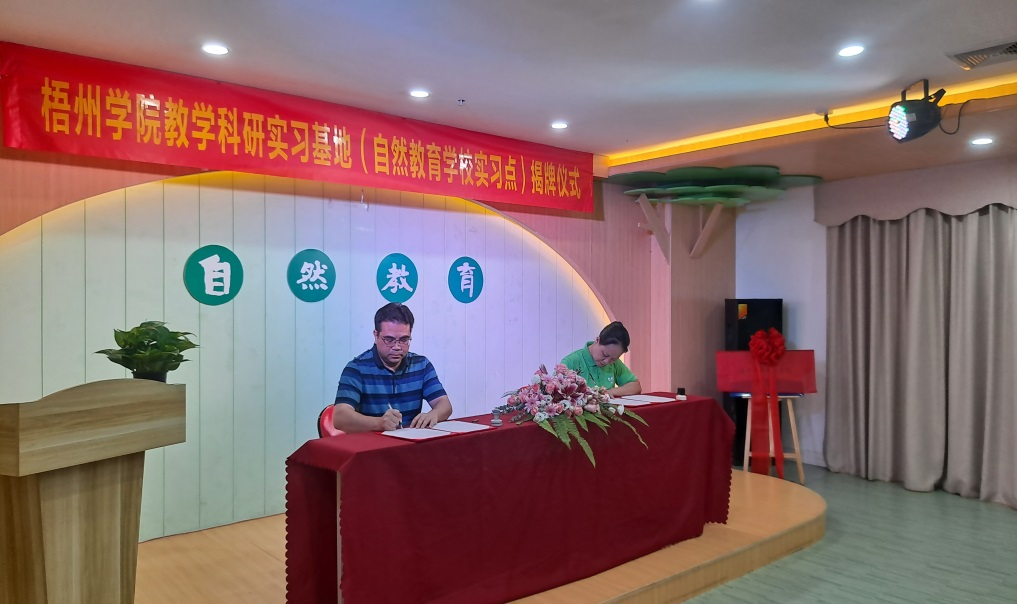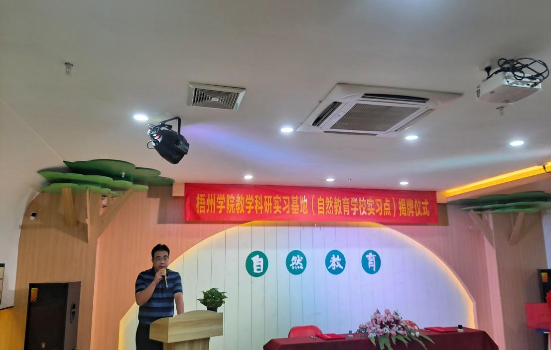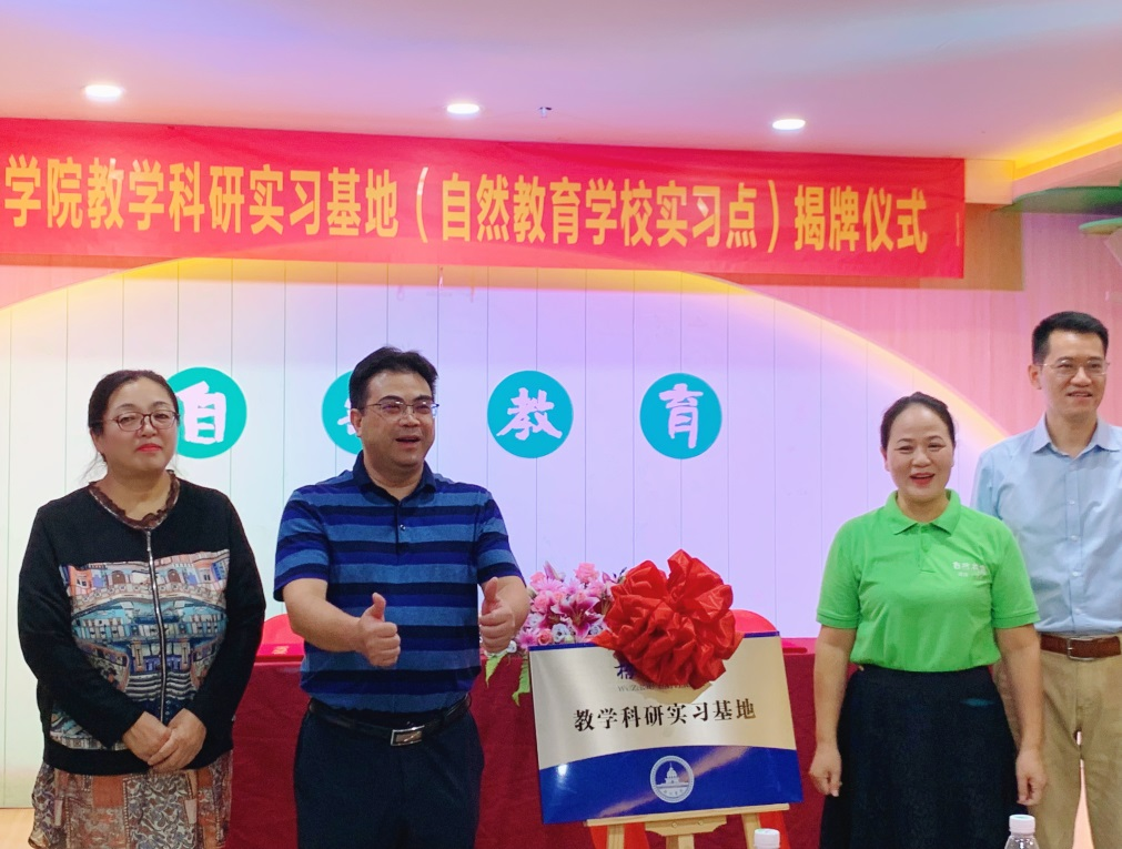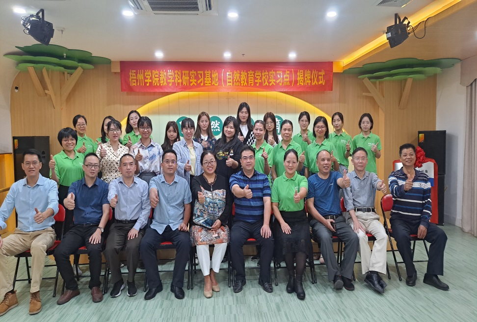 梧州学院外国语学院院长刘卫东、副院长宋银秋和外国语学院相关管理人员、教师及学生代表参加揭牌仪式。参加仪式的还有实习基地法人代表陈智娜、梧州市中小学教育研究专家以及自然教育部分教师代表。