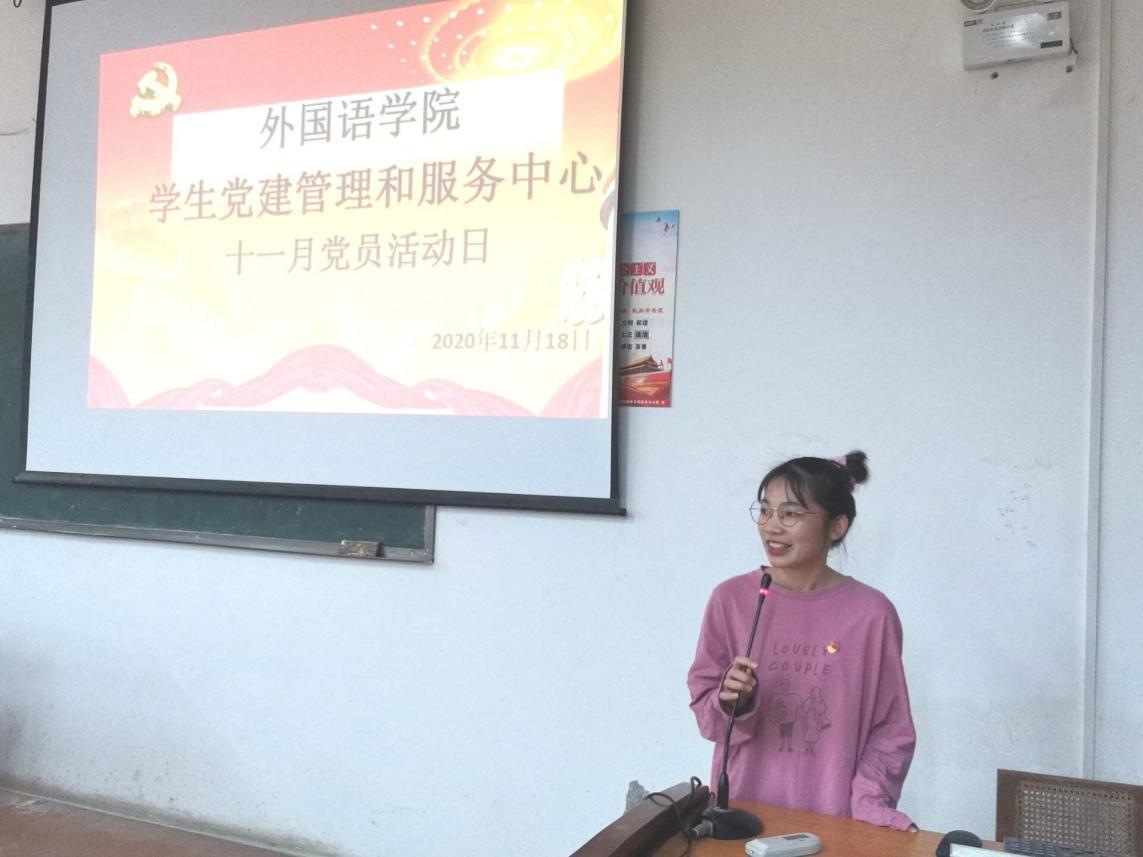 外国语学院党建中心于11月18日晚在明理楼S605开展十一月学生党员学习活动,学院全体学生党员和入党积极分子共60余人参加学习。