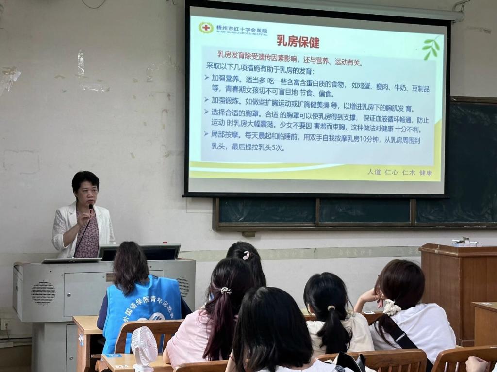 活动邀请了梧州市红十字会医院妇科主任雷嘉医生宣讲。雷主任讲解了女性各时期生理特点和健康保健内容,介绍了女性常见的疾病及治疗方法,以及如何辨别和预防疾病。雷主任还向同学们科普了生育方面的相关知识,引导大家养成良好的卫生行为和健康的生活方式。