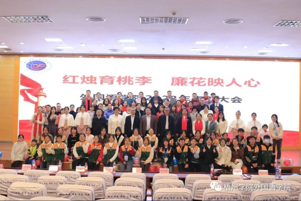 为了加强我院学风校风建设,塑造典型和树立榜样,营造优良学风校风,12月27日,外国语学院在明理楼报告厅召开主题“红烛育桃李 廉花映人心” 2023年表彰大会暨清廉报告会。学院领导班子成员、校友代表以及学院师生代表参加了本次大会。
