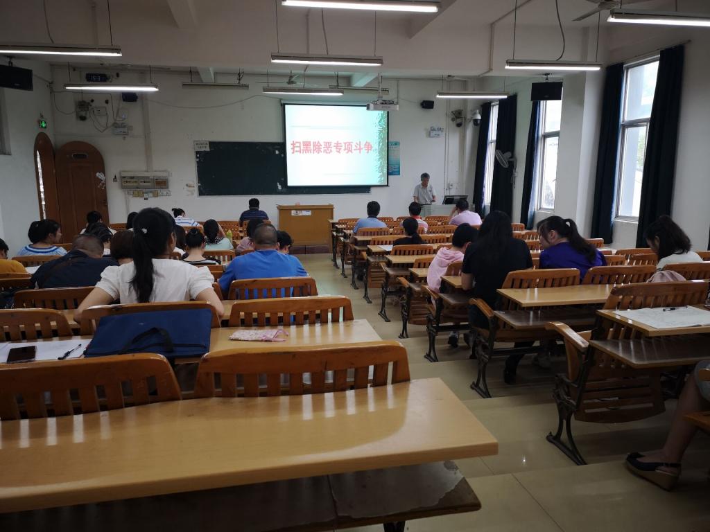 近日,外国语学院教工党支部在北楼205教室开展“扫黑除恶我先行,夯实基础勇担当”主题党日活动。活动首先由外国语学院党总支书记莫世有介绍了开展扫黑除恶专项斗争的重大意义、总体要求、目标任务等内容。随后全体党员集中签订无涉黑涉恶行为承诺书,强化敬畏意识和底线思维,从自身做起,自觉同涉黑涉恶等违法行为作坚决斗争。