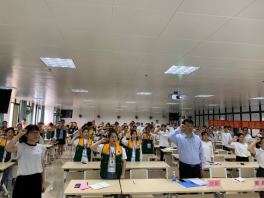 大会开始,外国语学院团委书记梁眉老师带领全体团员重温入团誓词、共唱国歌。