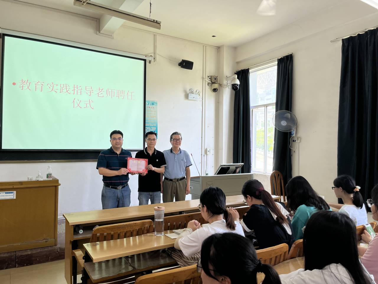 最后,刘卫东院长向叶瑞跃校友颁发商务英语专业教育实践指导老师聘书。