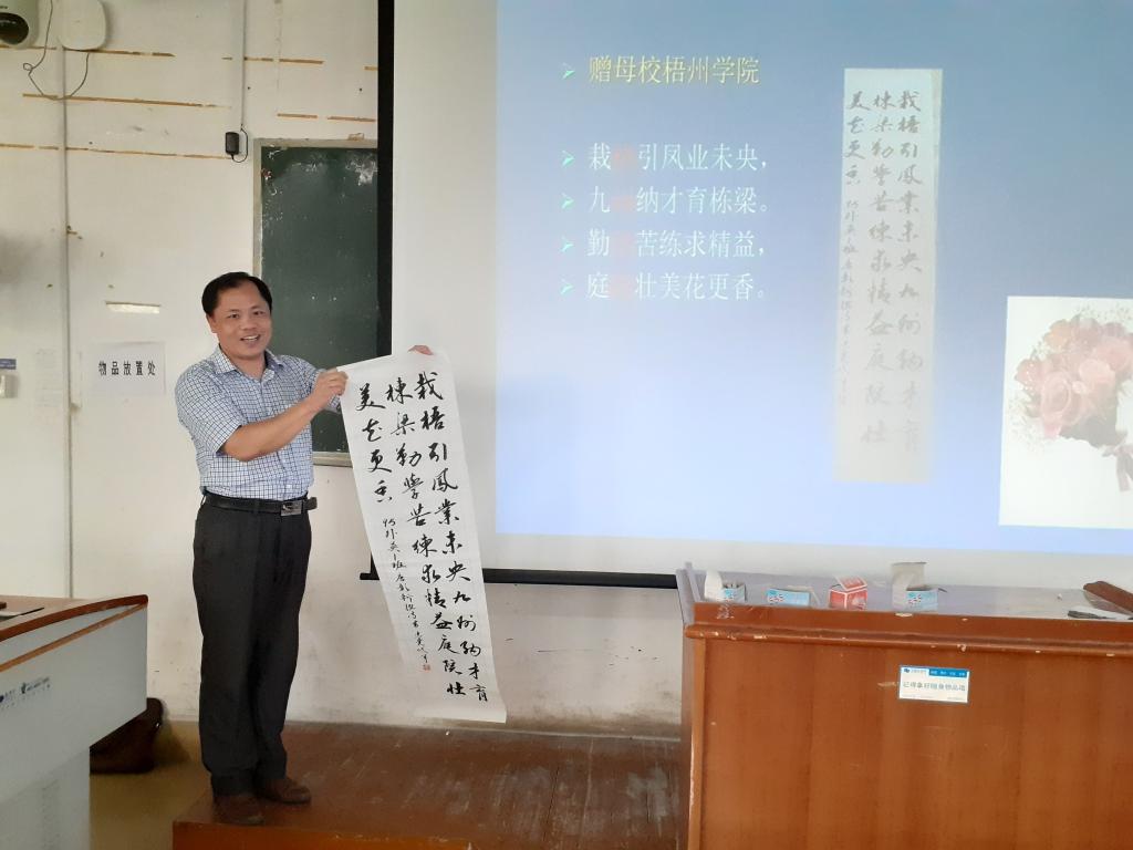 本次讲座的主讲人是原广西大学梧州分校外语系98届优秀毕业生唐彰新。毕业21年来通过自己不断地努力,从专科生到硕士生再到博士生,唐彰新老师在探索知识的道路上越走越远。1995年–1998年毕业于广西大学梧州分校外贸英语专业专科。1999年–2002年唐彰新就读于广西师范大学英语专业本科,2002年–2005年就读于广西师范大学教育经济与管理专业,被授予管理学硕士。2014年,被聘为陕西师范大学兼职硕士研究生导师,主要研究方向是教育基本理论、教育管理。2015年被任命为玉林市博白县副县长,现任玉林师范学院发展规划处处长。2016年毕业于华中师范大学教育学原理专业,被授予教育学博士学位,2018年晋升为教授职称。