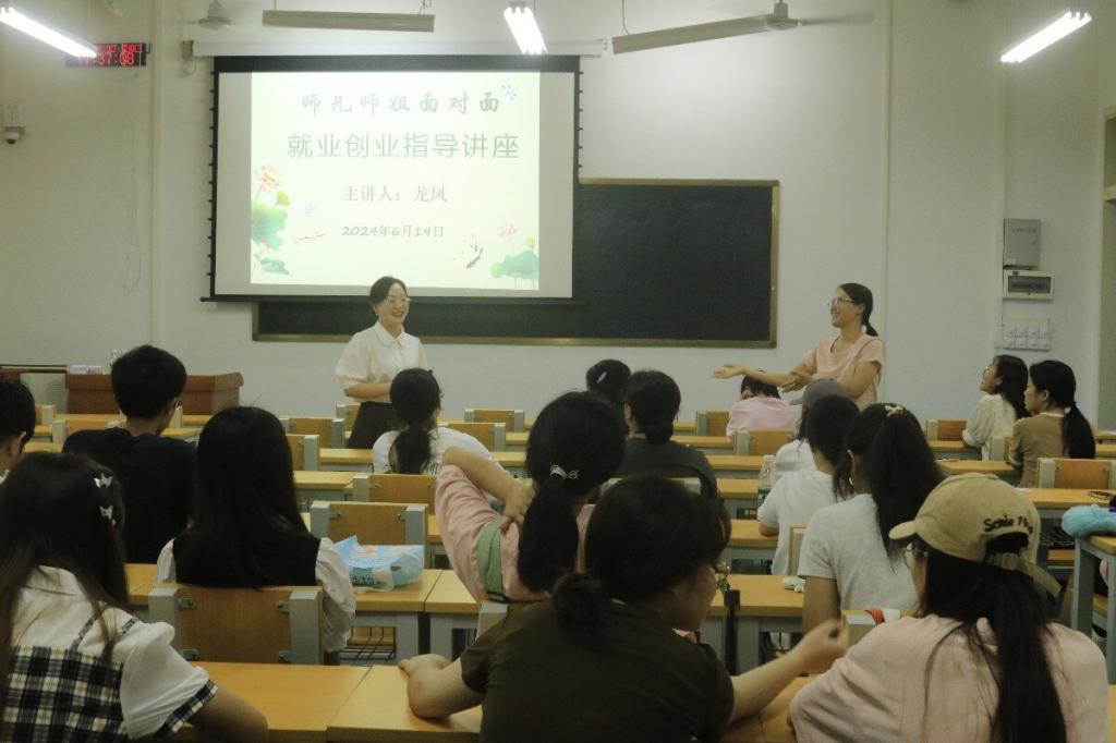 龙凤详细回顾了自己的学习和工作经历,分享了自己的创业经验,特别强调创新思维、团队合作和市场营销的重要性。她表示,自己的成功离不开母校的栽培和老师们的悉心教诲。她鼓励师弟师妹们要珍惜在校时光,努力学习专业知识,为自己的未来打下坚实基础。