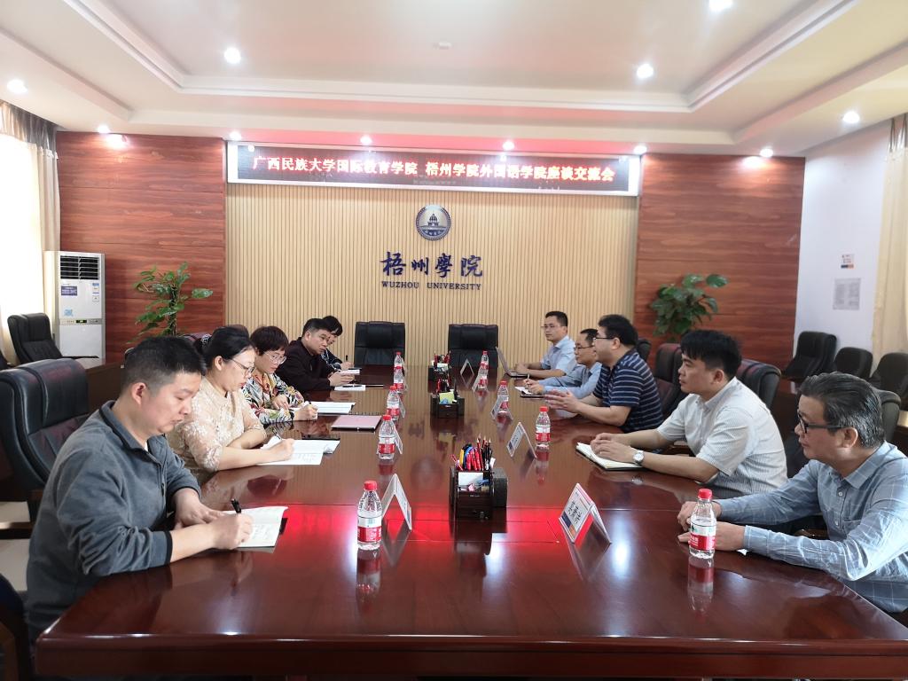3月17日上午,广西民族大学国际教育学院院长周艳鲜一行5人到我校考察交流。我校外国语学院学院全体领导和相关教研室老师参加了交流座谈会。 在座谈会上,两位院长分别介绍了参会人员和两院的基本情况。双方围绕商务英语专业办学情况、人才培养方案、实践教学、师资队伍建设等内容进行了热烈的探讨交流。