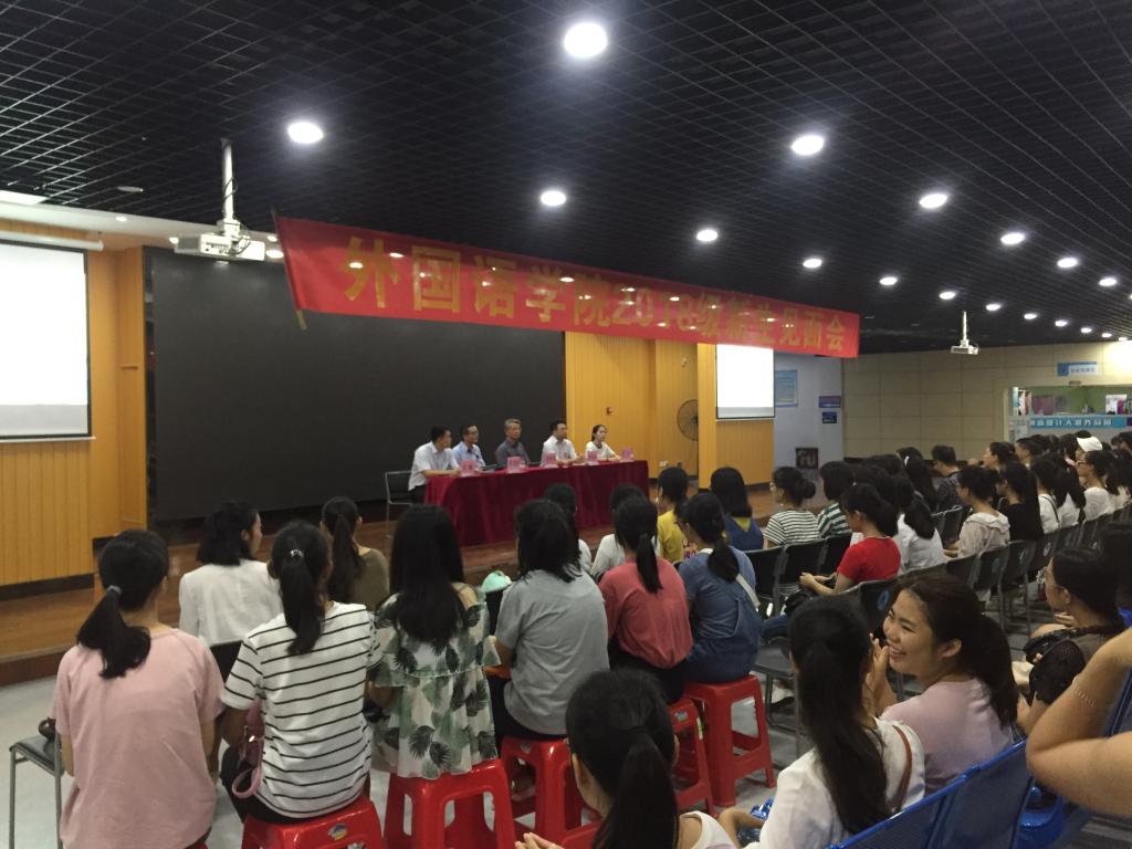 9月16日上午,外国语学院在大学生发展中心举行2018级新生见面会,学院党总支书记莫世有、院长刘卫东以及全体辅导员,2018级新生班主任,204名2018级新生参加了见面会。会议由学院党总支副书记庄雨主持。