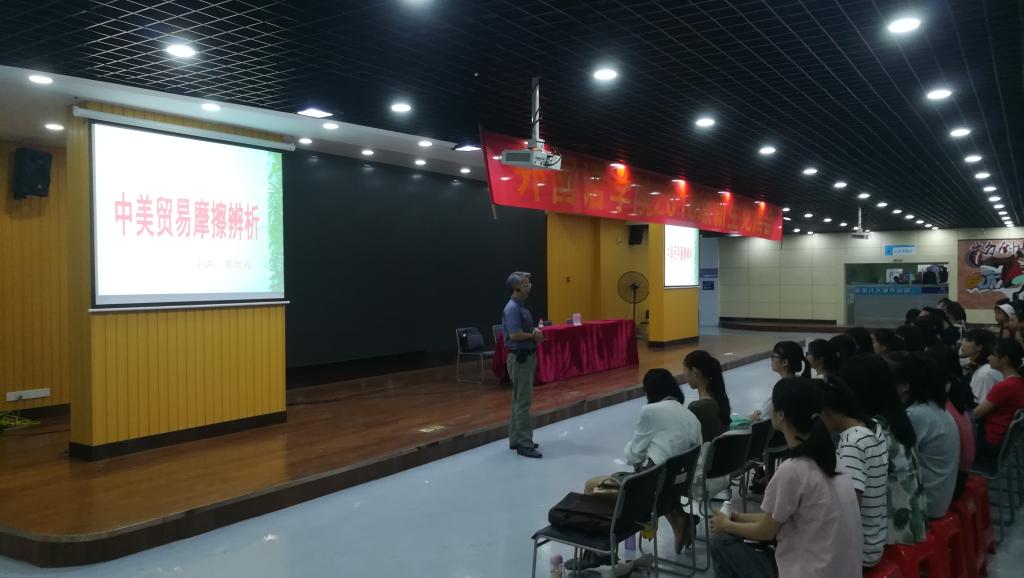 第二阶段莫世有同志以 “中美贸易摩擦”为题开展了讲座。分别从“中美贸易摩擦是怎么回事”、“中美贸易摩擦的原因”、“如何应对中美贸易摩擦”、“面对中美易摩擦学生可以做些什么”等四个方面的相关问题展开了学习,教育学生遇到社会热点问题要关注主流媒体的宣传。