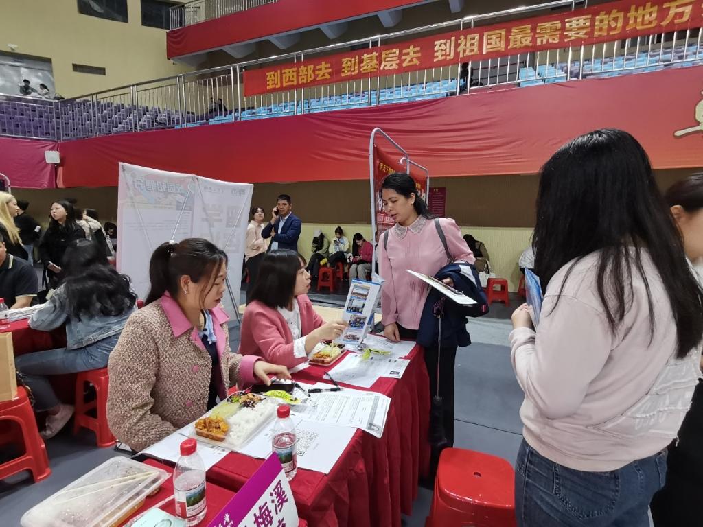 考察组还参加了广西2025届重点群体高校毕业生暨“宏志助航计划”精准帮扶就业双选会(桂林专场)。在双选会现场,考察组充分调研了企业的人才招聘需求,建立访企拓岗意向,并现场指导我校毕业生应聘面试。