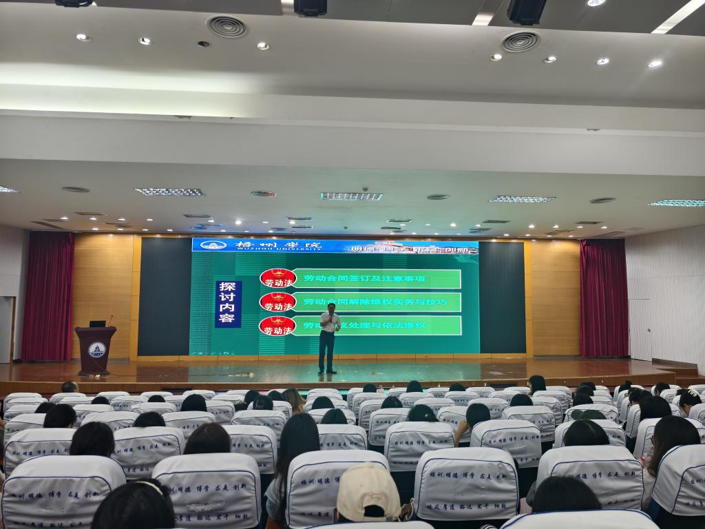 会议还邀请法学院的张波副教授为同学们作“劳动维权实务与技巧”专题辅导。张老师通过实际案例,向同学们解读了《劳动法》《劳动合同法》的有关条款及适用情形,给同学们可能遇到的各类劳动纠纷、劳动维权技巧提出了建议。