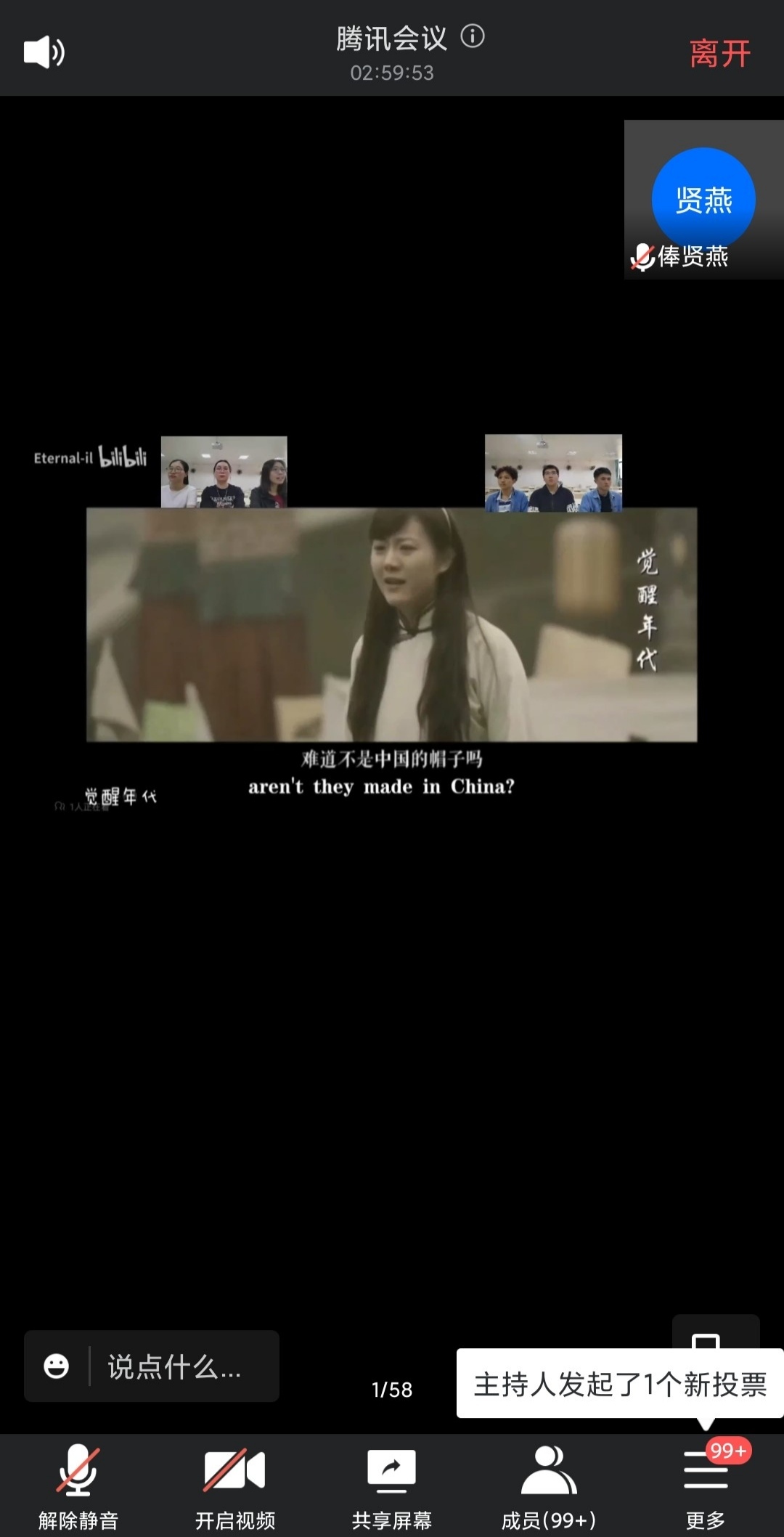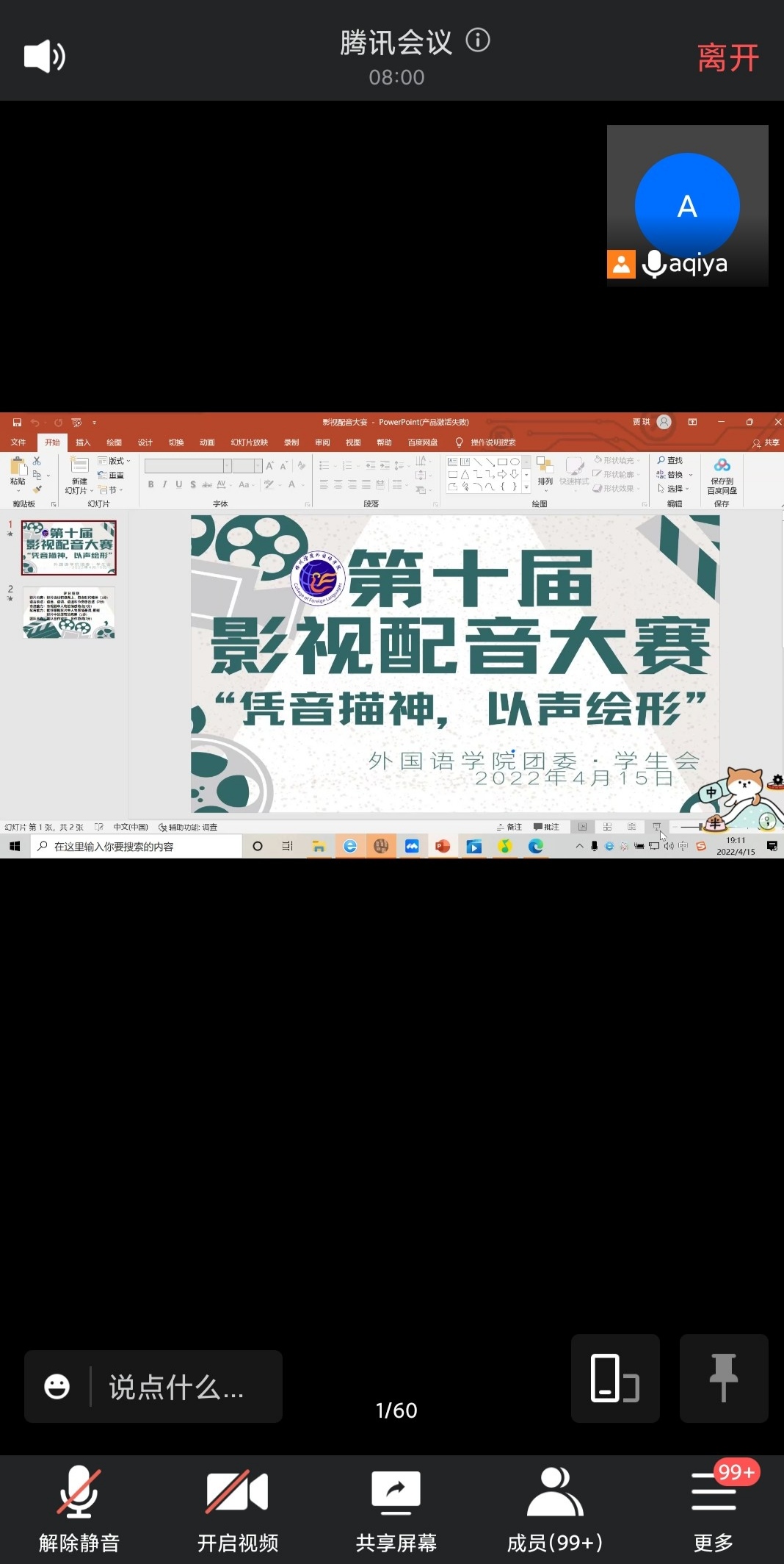 4月15日晚,外国语学院通过腾讯会议APP举办了“凭音描神,以声绘形”线上影视配音大赛,约500名师生观看了比赛。