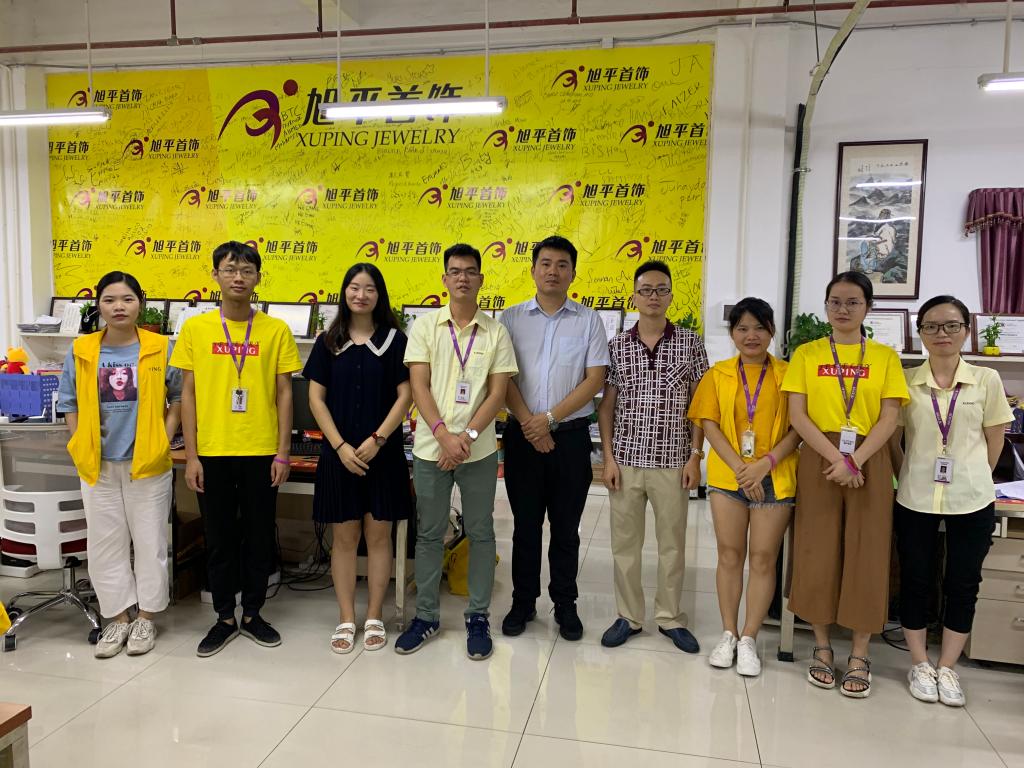 为进一步拓展外国语学院校企合作、协同育人机制和产教融合途径,了解学生实习就业状况和调查实习就业单位对学校毕业生满意度情况,8月1日, 外国语学院党总支副书记庄雨一行3人赴广东旭平首饰有限公司(广州市荔湾区总部)对校外教学科研实习基地开展调研活动,并看望了在公司实习工作的学校各年级校友和学生党员。