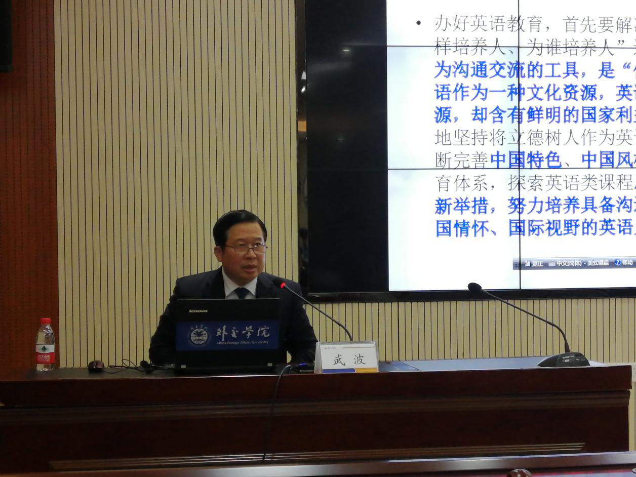 武波教授结合《新文科建设宣言》和《普通高等学校外国语言文学类专业教学指南》,指出新时代国际化人才的新标准,以及外语教学应该如何有针对性地加以改革和调整。武教授指出,我们所处时代的背景是中华民族的伟大复兴,其核心标志就是中国梦,中国的外语教学必须做好充分准备,中国人要用西方的语言(主要是英语)将中国文化的核心思想和理念,传播到世界的其他地方。