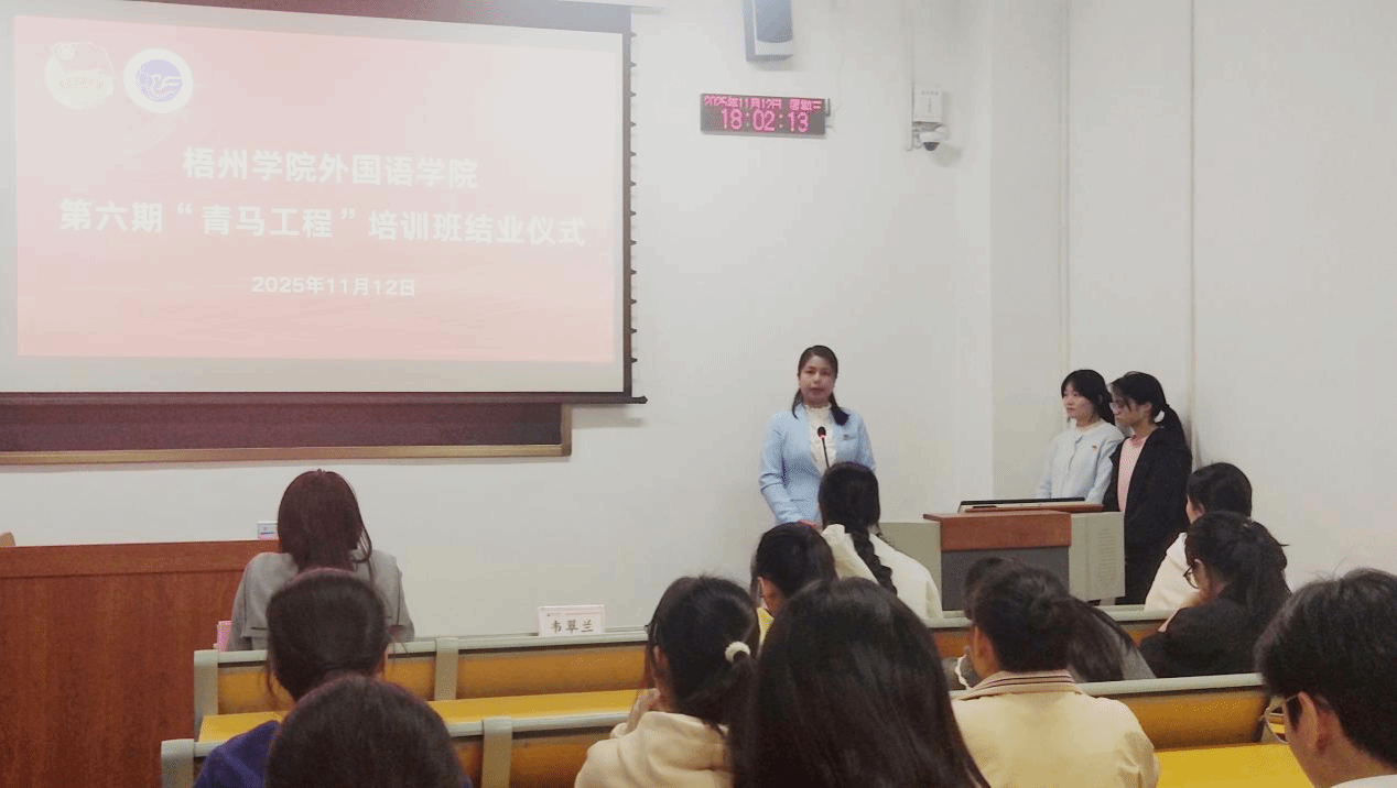 11月12日下午,梧州学院外国语学院第六期“青年马克思主义者培养工程”培训班在北区s208举行结业仪式。学院党委副书记韦翠兰、团委副书记李秀瑜及全体学员参加。