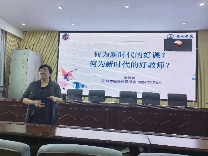 当天下午,宋银秋院长还受邀出席桂林电子科技大学外国语学院举办的第37期花江语坛“理解当代中国” 外语教学实践创新培训会,为参会代表作了“何为新时代的好课?何为新时代的好教师?”的主题讲座。