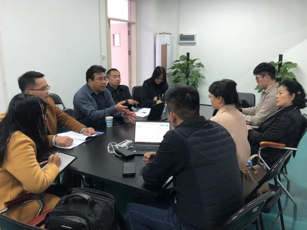 双方在外国语学院院楼四楼会议室进行了座谈。刘卫东院长介绍了外国语学院在硕士点建设以及学科专业建设中取得的成绩。丁丽董事长和李雷副总裁实时展示了翻译软件在实际教学中如语音室使用和口译教学中的应用情况。双方还就机器翻译和译后编辑在MTI专业中的应用及未来就业方向等方面展开进一步的交流和探讨。
