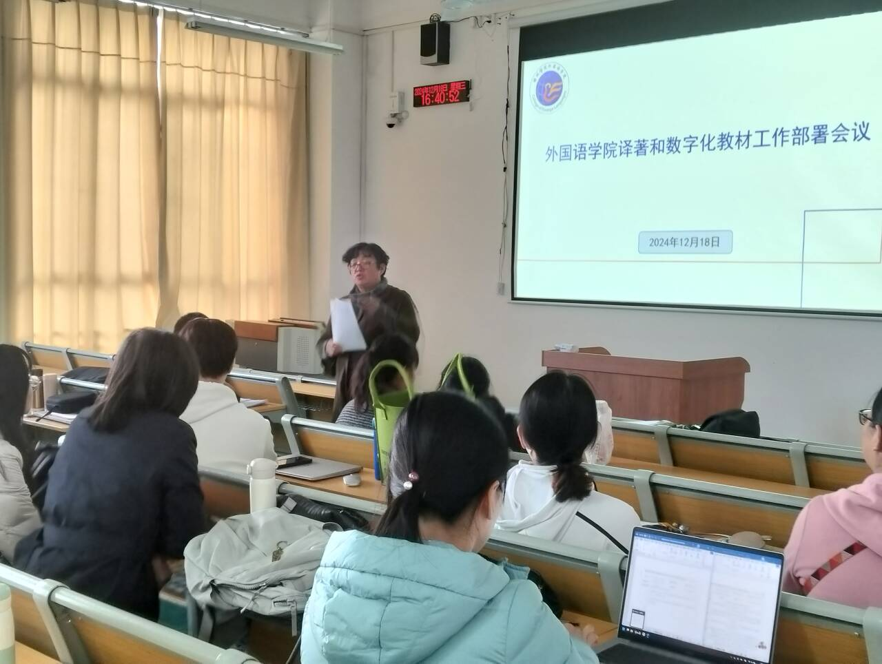 12月18日,外国语学院召开会议,部署译著翻译工作和数字化教材编写工作。宋银秋院长主持会议。副院长晏劲松以及相关教师参加会议。